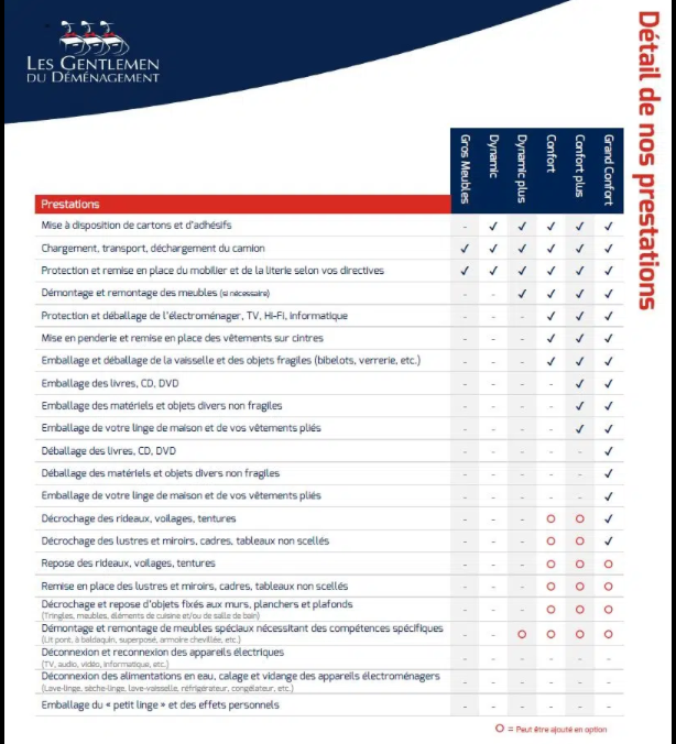 | 📦 Formule Standard | – Démontage et remontage du mobilier – Chargement, transport et livraison – Protection complète du mobilier | Familles ou couples souhaitant un bon équilibre entre autonomie et confort | à partir de 750€ |